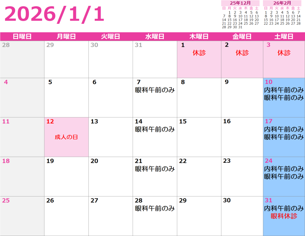 12月28日(土曜日)~1月3日(金曜日)は休診とさせていただきます。